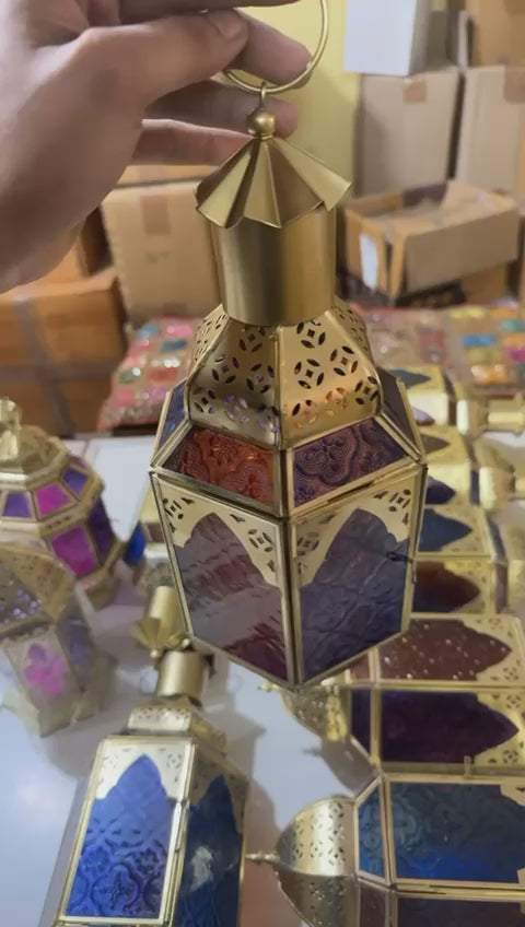Our Large Gem Lantern is superb in its colour and style. Very rarely have we encountered this design. Coming in at a large size of 38cm, this piece will impress almost anybody who gazes it. Miraculous mix of gold and coloured glass, this lantern will be admired for years to come.