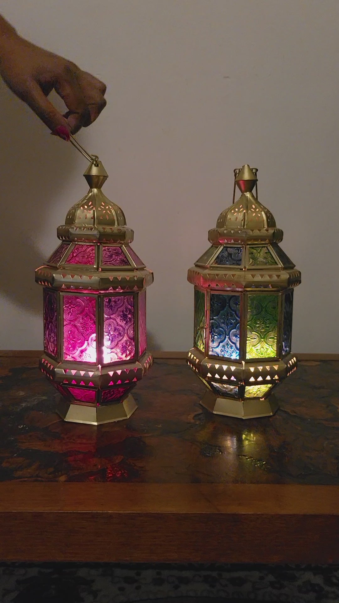 The Nile Blooms have a distinct character about their shape and colour. These lanterns look gorgeous in its wonderful colours and with some light, it can become magical. These pieces when lit will be sure to set the mood for any occasion. The blooms can be fitted with traditional candles, LED pillars or colour changing lanterns which brings out the amazing display. These come in either Purple and Pink or Blue and Green