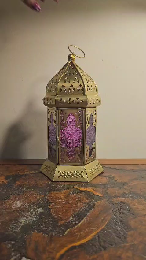 Our Ayla Lanterns is one of our best selections. With a good height of 25cm, it can be positioned anywhere that needs character. This gorgeous lantern displays fine detailed work. From the metal to glass, it show cases light pink and purple in it's finely cut and embossed glass. Eye catching straight away, and with the right candle it can bring your space alive. This lantern is made from iron and comes in green and blue also.